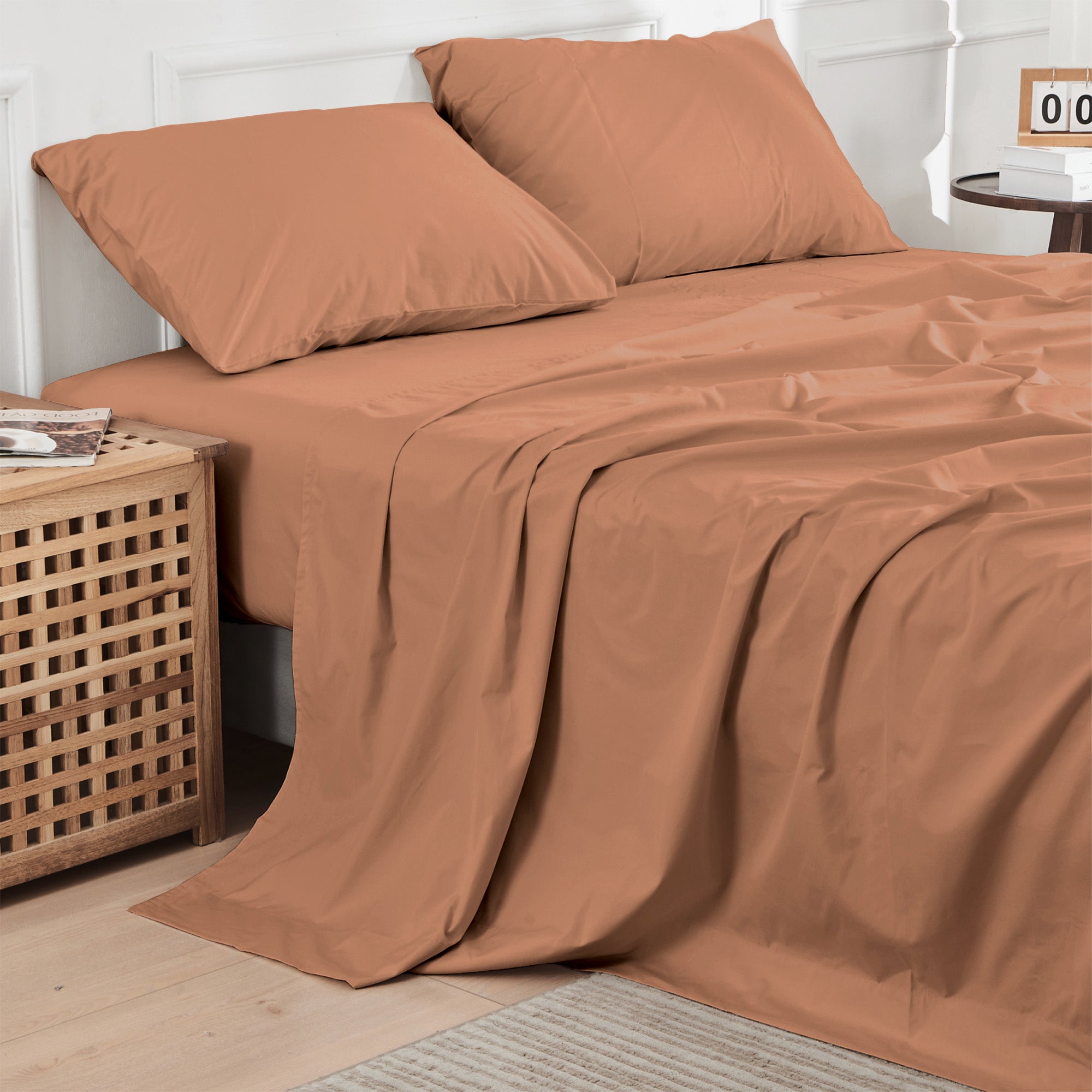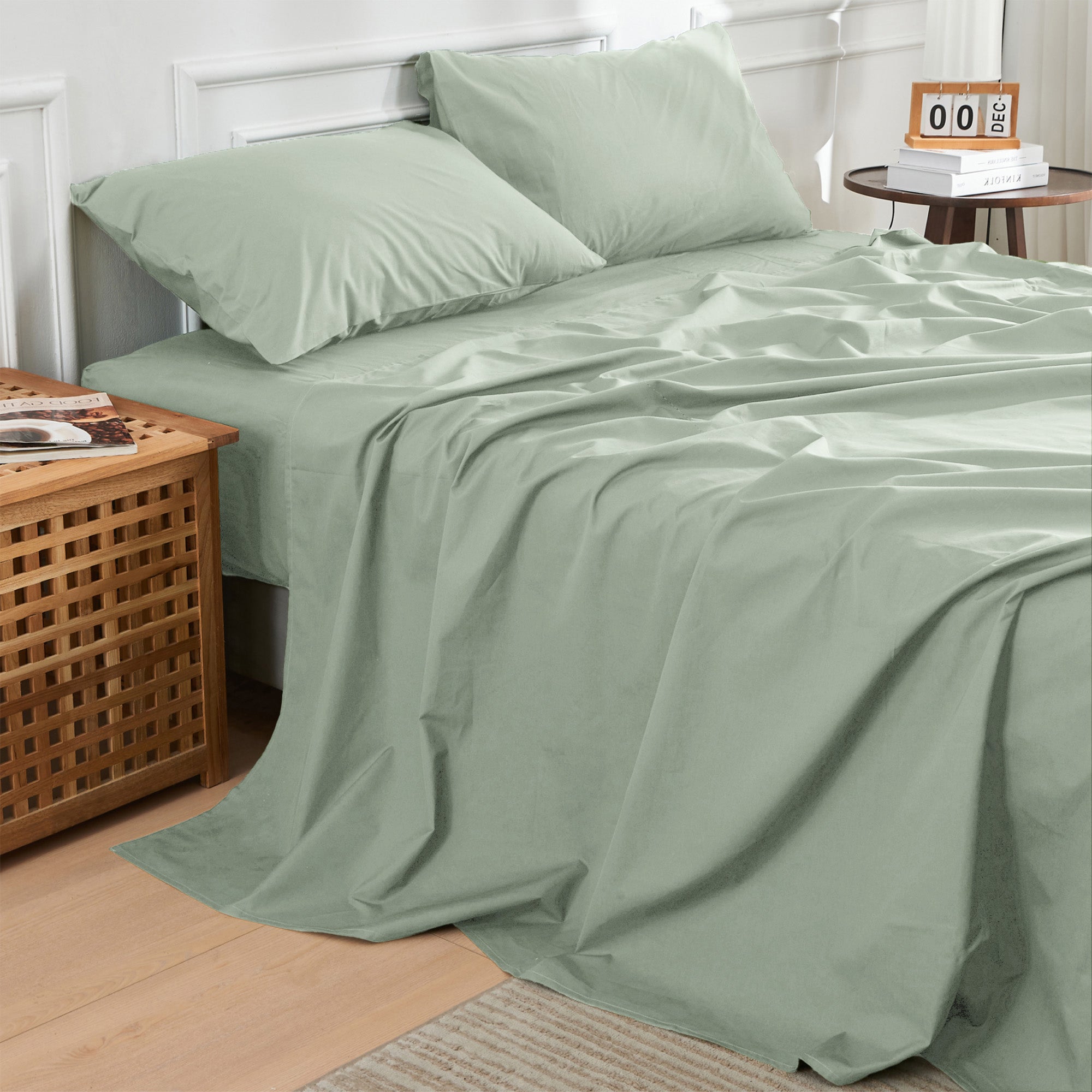 Include: 1 fitted sheet, 2 pillowcases, and 1 optional flat sheet